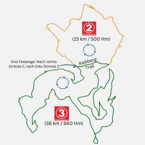 Die Strecke K1 ergibt sich aus der Verbindung der MTB-Touren 2 & 3.