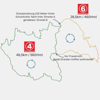 Die Strecke K2 ergibt sich aus der Verbindung der MTB-Touren 4 & 6.